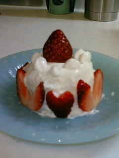 じーっと眺めたあと、てっぺんのいちごをはがしてわたしにくれました…