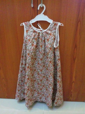 細かいいちご柄に白のバイアステープで、すっきりかわいい感じになりました。