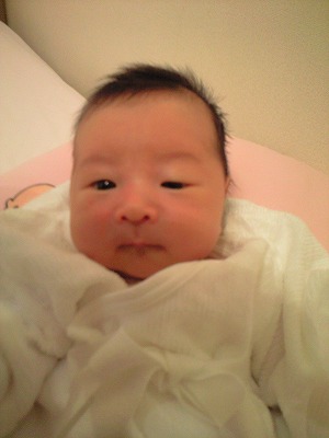 パパンが分娩室に入って、いきみ2回で無事生まれました。