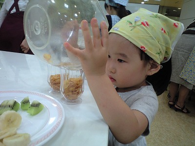 パフェ作ってます。真剣。
