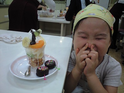 ケーキを焼いている間にパフェを作って食べて、ケーキはお土産、という教室でした。